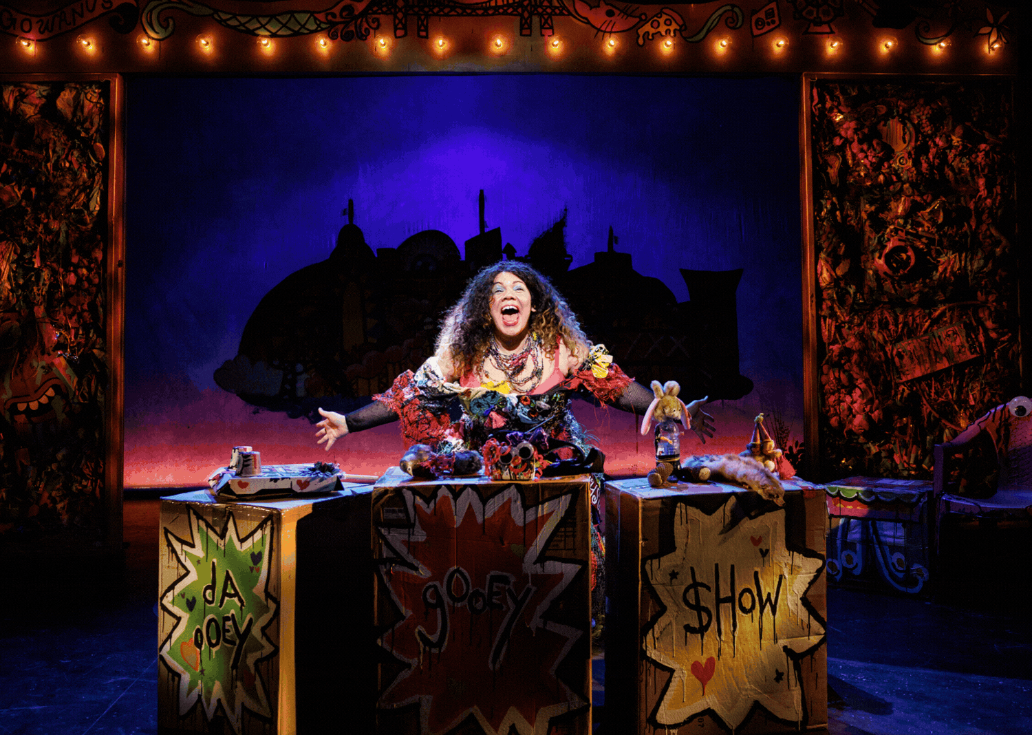 A new puppet musical about an orphaned sorta mermaid living in Newtown Creek in her search for family. Amidst the backdrop of a near apocalyptic Brooklyn bought by entertainment and tech giant G’wond’rLand Inc., Gooey spends each day escaping her putrid reality into a world of her own creation: a world in which she’s perfect, beautiful and loved. But when her radio sends her on a journey to G’wond’rLand Theme Park, Gooey comes face-to-face with a streetwise rat, a severed arm, anthropomorphised toxic sludge, and a couple’a wiseguys who confront her with the truth about her dreams and how she came to be. Situated somewhere between Sweet Charity, The Sopranos, The Wiz, Pee Wee’s Playhouse, and 80's body horror, GOOEY disgusts and delights in equal measure as it examines the difficulty of finding true belonging in a gentrifying New York City.